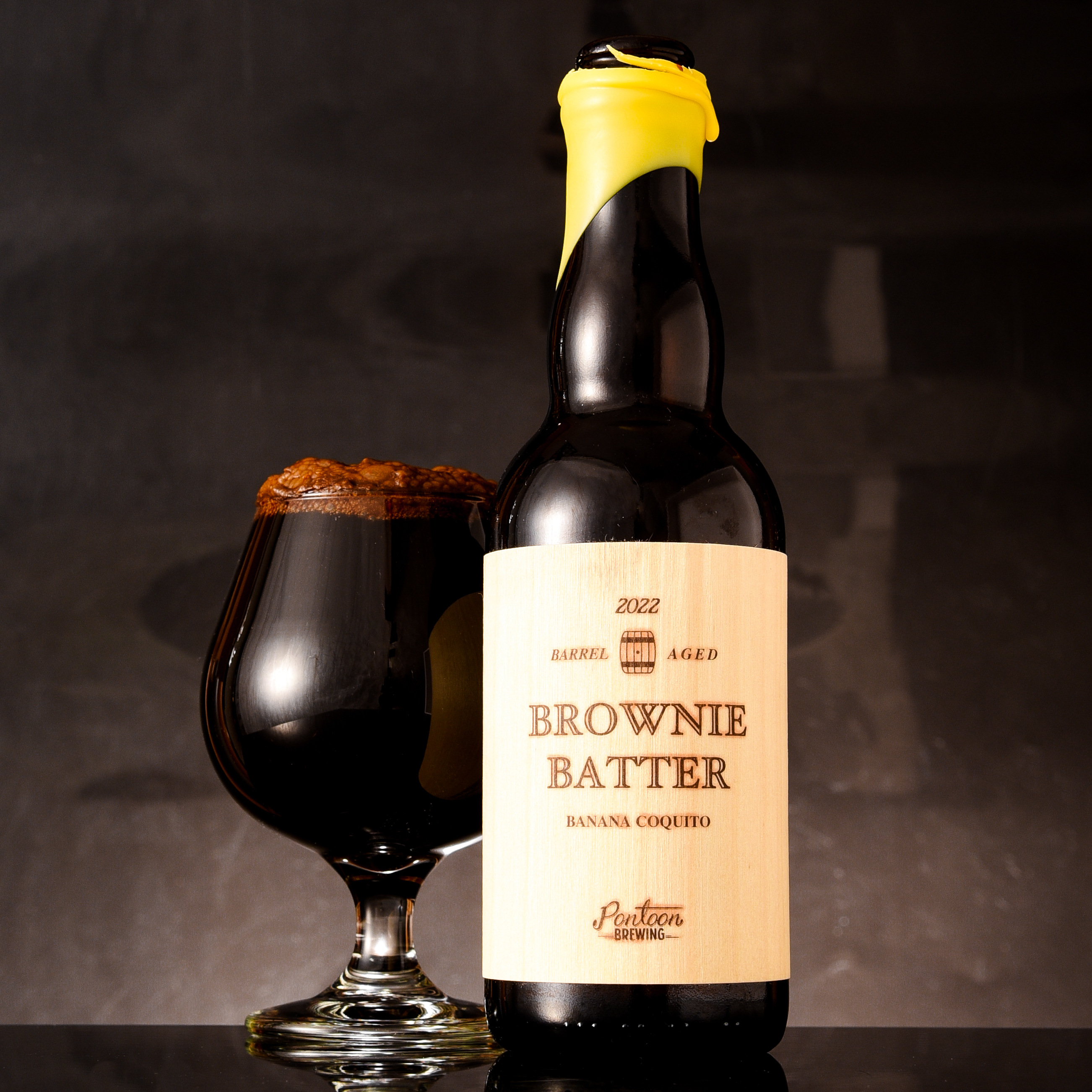 Fudgy chocolate and warming baking spice swirl together over a bed of roasty malts. Tropical notes of banana and coconut accentuate the rich sweetness, while oaky rum nuances add a sublime complexity to the velvety finish.