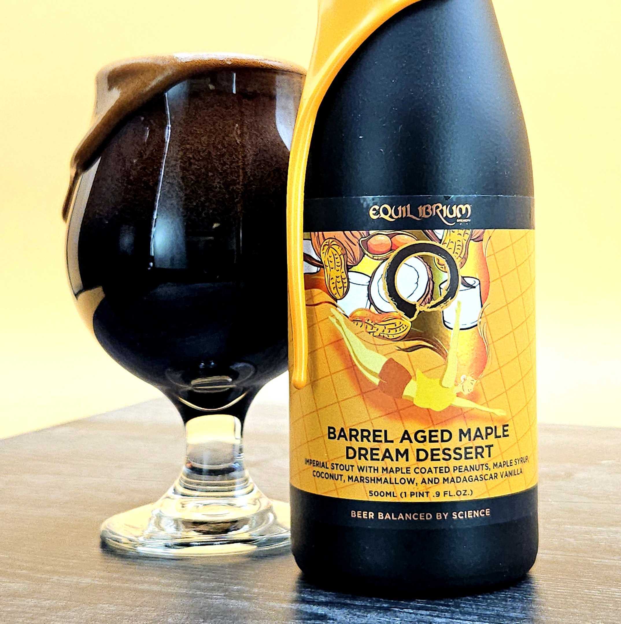 The EQ crew started with a rich beer aged in Heaven Hill bourbon barrels for 24 months. They conditioned it on maple coated peanuts and maple syrup for a treacly flavor that melts into the cocoa-y Stout. Finally, they rounded it all out with coconut, marshmallow, and Madagascar vanilla.