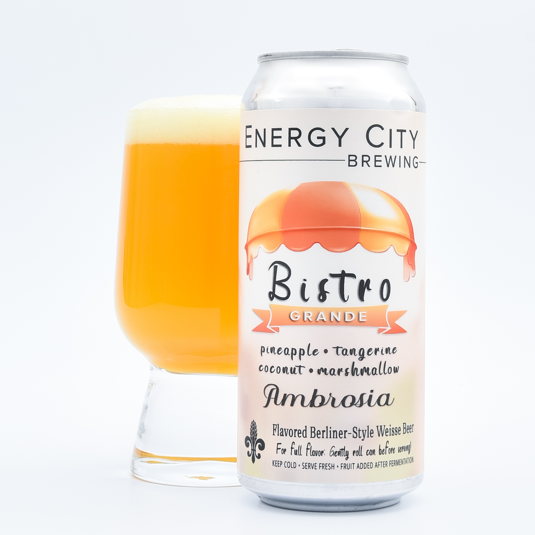 Fortunately, you don’t have to be an ancient thunder-god to get a taste of this Ambrosia. The Energy City crew made it for folks right here on earth! To do it, they crafted a tart, Berliner Weisse-style brew with heaps of real coconut and marshmallows. Then, they cranked up the flavors with huge additions of real tangy tangerine and tropical pineapple!