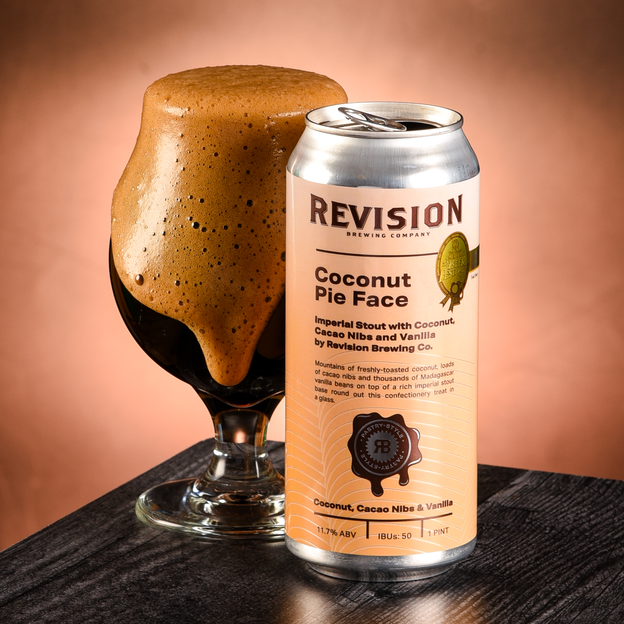 Subtly sweet caramel and lavish vanilla aromas waft from the rim. Added cacao and coconut fuse with the dark, roasty malts, mimicking all the flavors of chocolate liqueur drizzled over rich and creamy coconut ice cream.