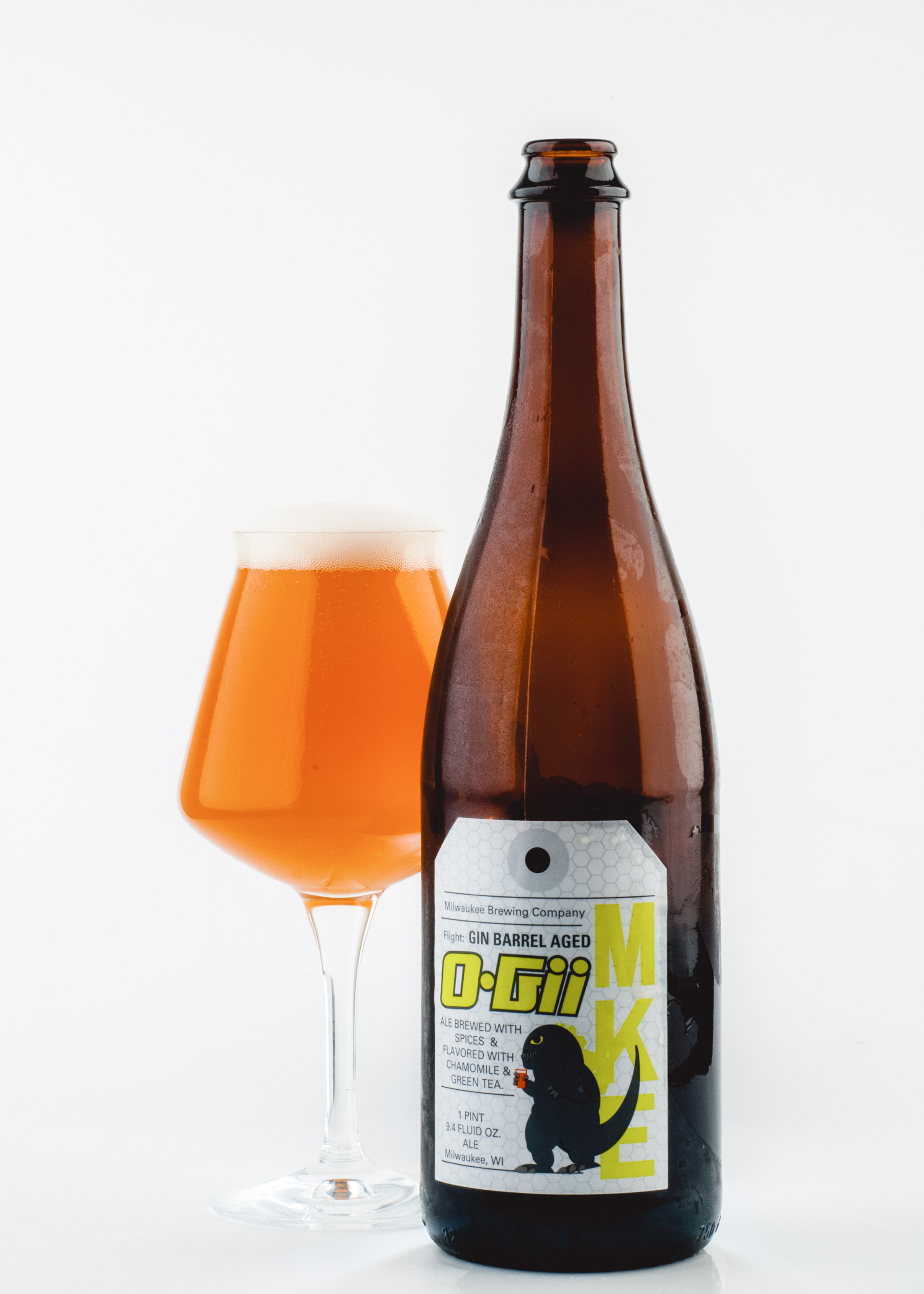 Pop the cap, pour some tasters, and challenge your friends to pick out all of O-Gii’s floral flavors: there’s subtle orange peel and a hint of coriander from the Witbier base; sharp resinous pine from juniper berries; fresh mint from sweet basil; snappy spice from ginger; floral citrus from green tea; and deep earthiness from Wisconsin ginseng. O-Gii finishes smooth with faint woody tannins. With so many complex delicate flavors, your guests won’t even notice its 10.5% ABV strength.