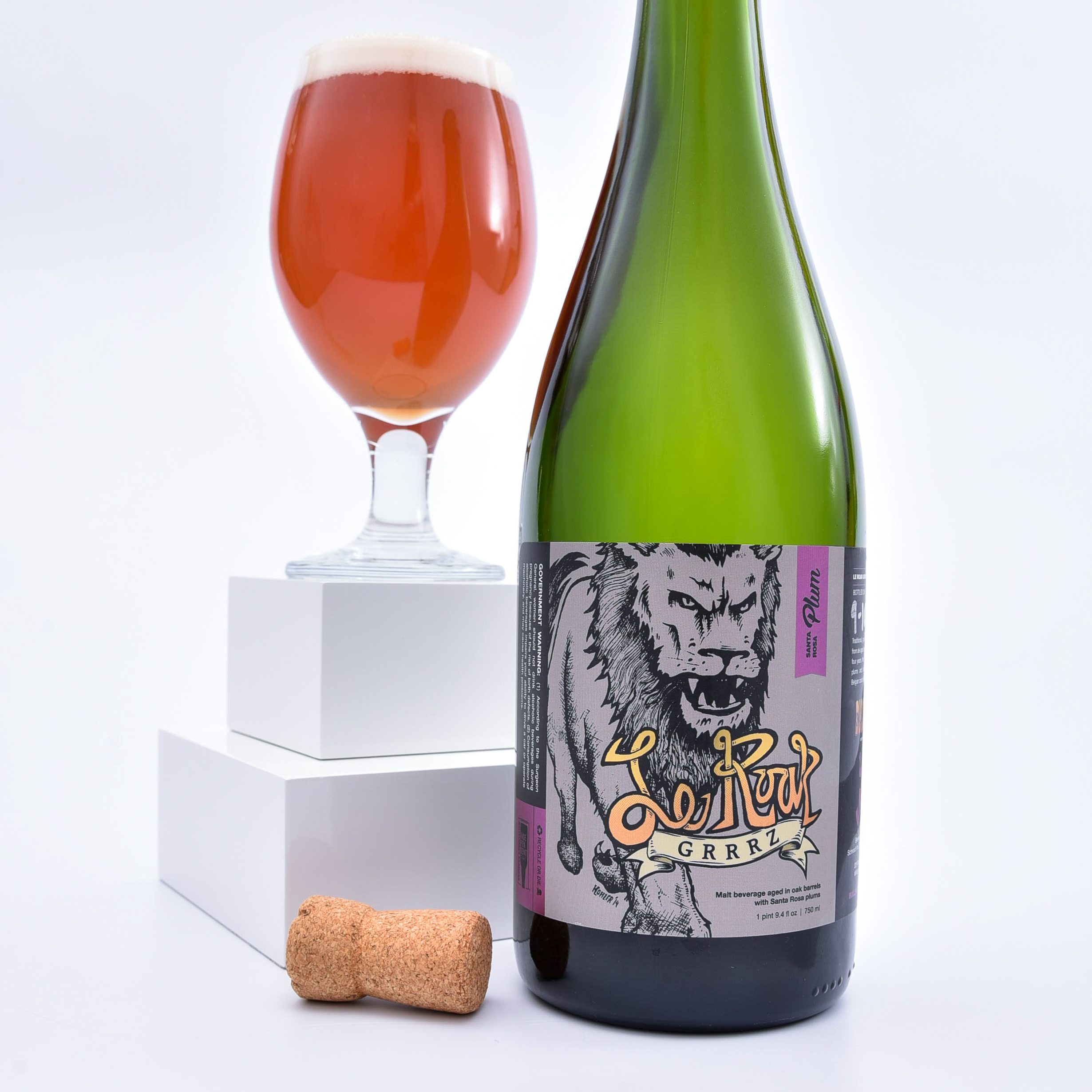 Bullfrog started with a Wild Ale spontaneously fermented in oak and aged upwards of four years! Then, they blended Ales matured anywhere from one to four years and aged the blend on plums for an additional six months. Next, they bottle conditioned the brew with Belgian candi sugar for a crisp, effervescent body before finally cellaring Le Roar Grrrz Plum for twenty months, for a total process time just shy of six years!