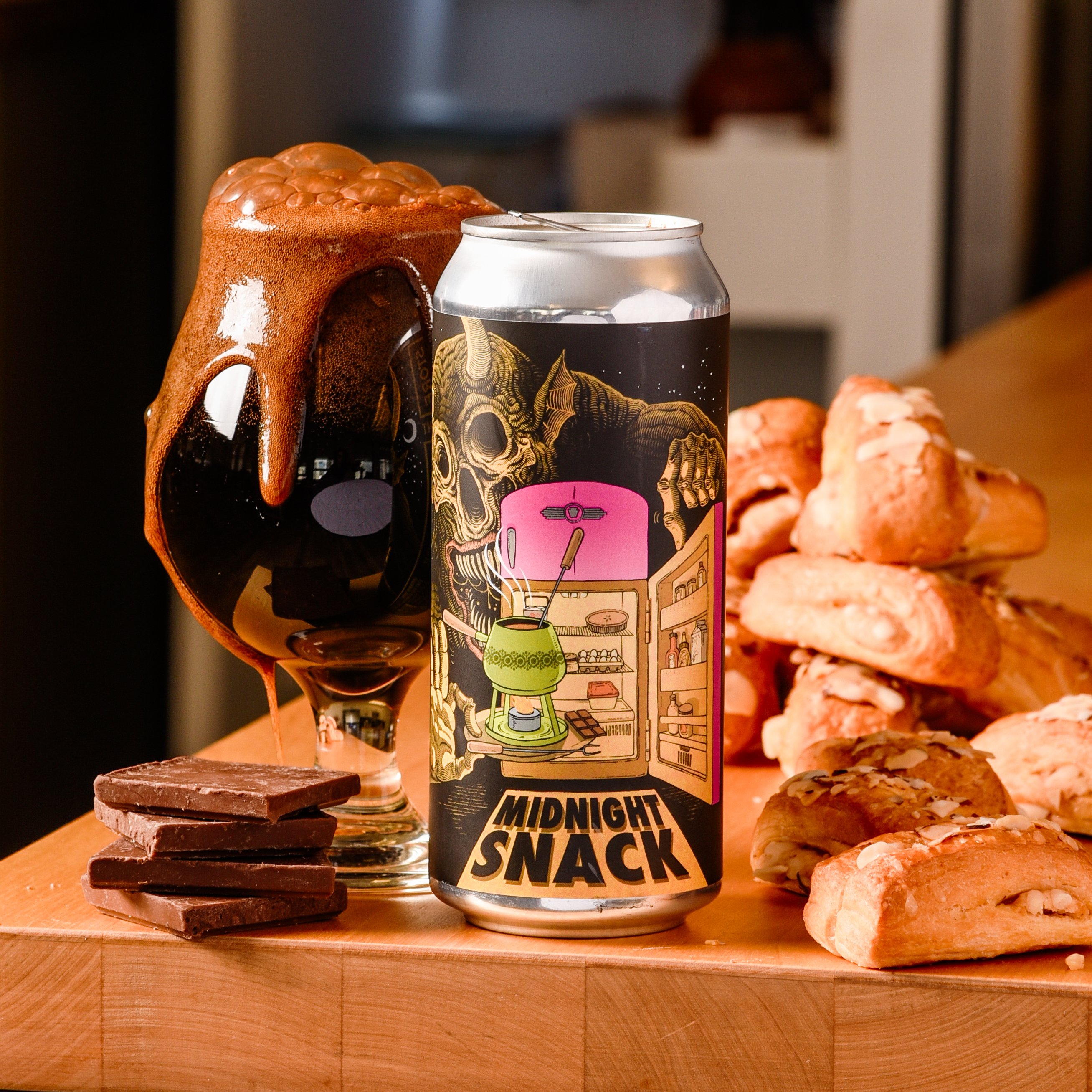 The crew was inspired by the classic French dessert/ party activity to craft today’s sumptuously chocolatey Pastry Stout. They took a roasty base and stirred in chocolate, cream, and vanilla bean before dunking a bunch of pound cake into the mix.