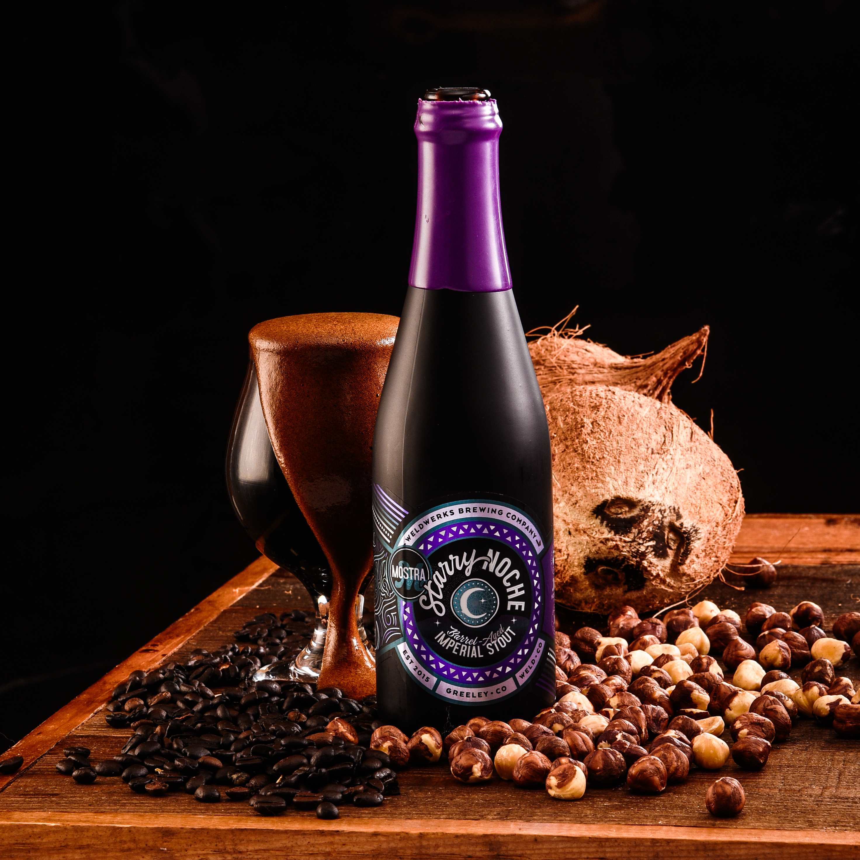 To create it, the brewers worked directly with the folks at San Diego’s Mostra Coffee. First, they carefully selected four incredible Stouts, each aged in different bourbon barrels — six-year Fitzgerald, ten-year Eagle Rare, four-year Old Elk, and six-year Weller. They carefully combined the brews, then rested the blend on toasted and raw coconut, hazelnut, and a specially curated blend of Mostra coffee.