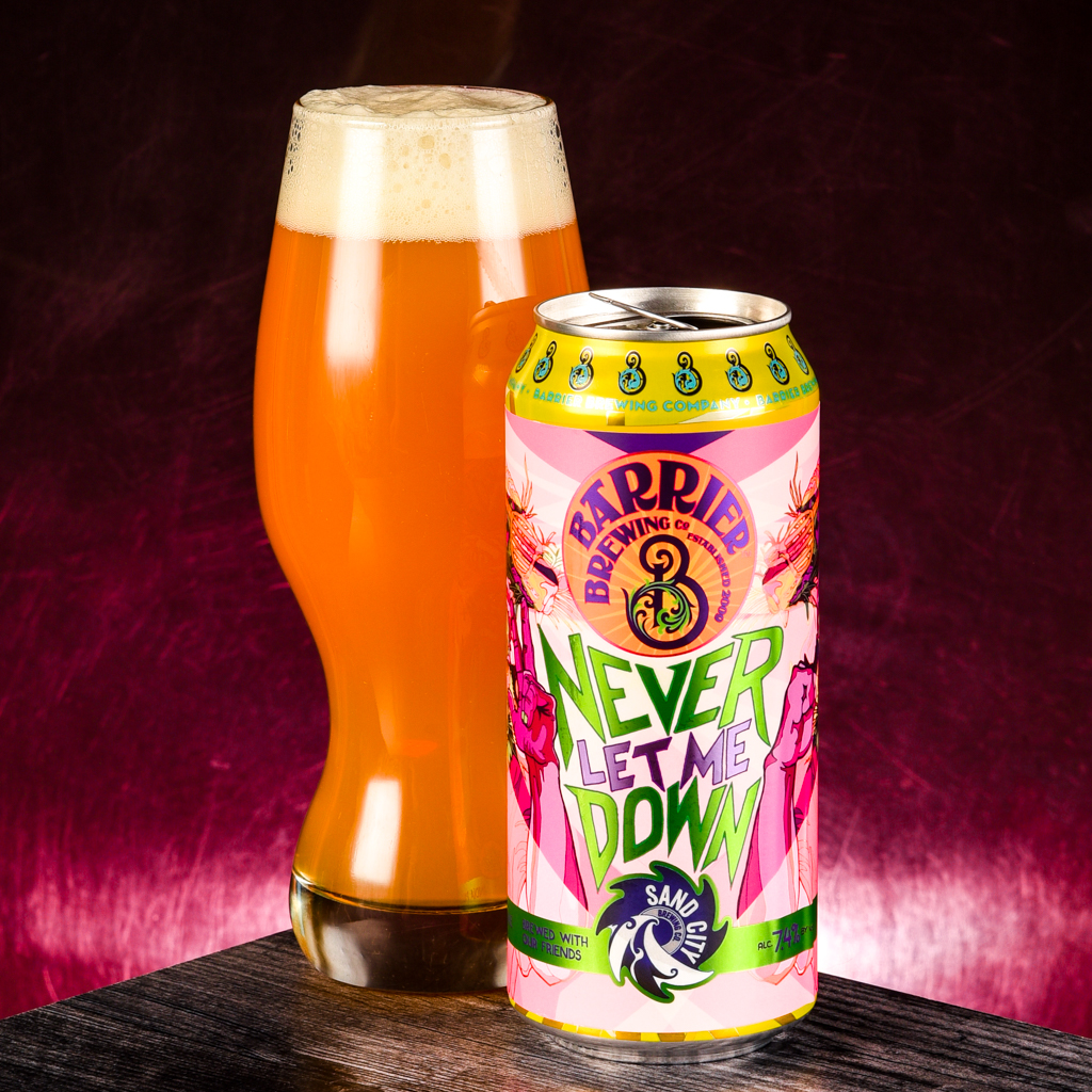 A collab brew between Tavourster favorite Barrier Brewing and their friends at Sand City, this fruity, piney, hazy brew has Never Let Me Down!