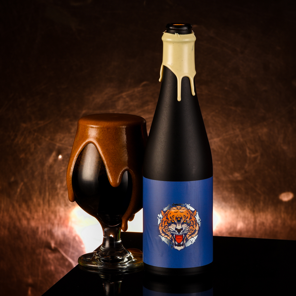For Pentamerous Tiger, the Tripping Animals crew teamed up with friends at Harland, Cerebral, HOMES, and Grimm Artisanal Ales! The quintet aged a cocoa-y Stout base in Woodford Reserve bourbon barrels AND maple syrup barrels for 16 months!