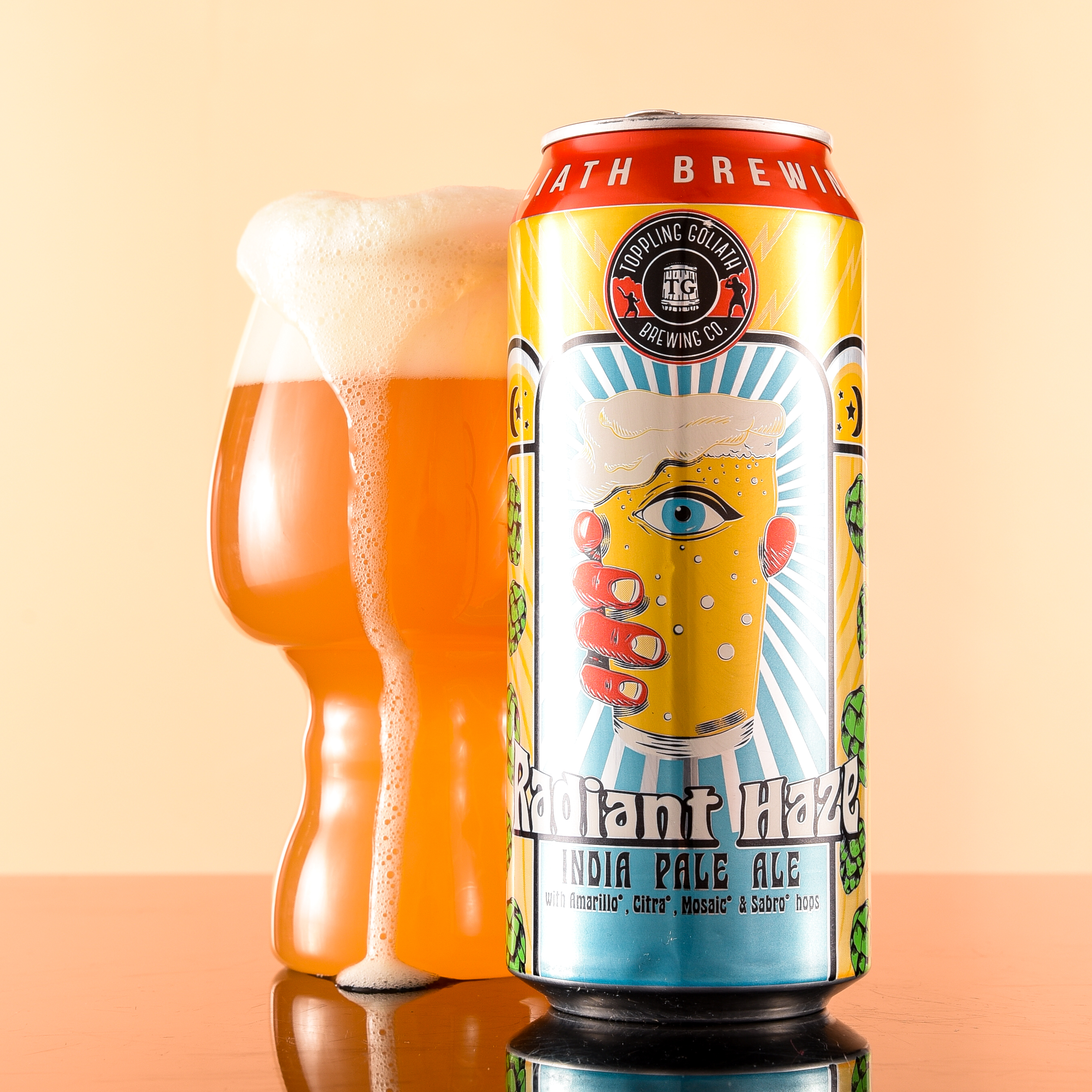 The US Open Beer Grand National Champions at Toppling Goliath collaborated with Radiant to create a lush IPA bursting with Strata, Citra, and Mosaic Hops. The resulting aromas of pineapple, mango, and sweet citrus form a swirling aura around the golden haze, taking you on a tropical trip full of good vibrations.