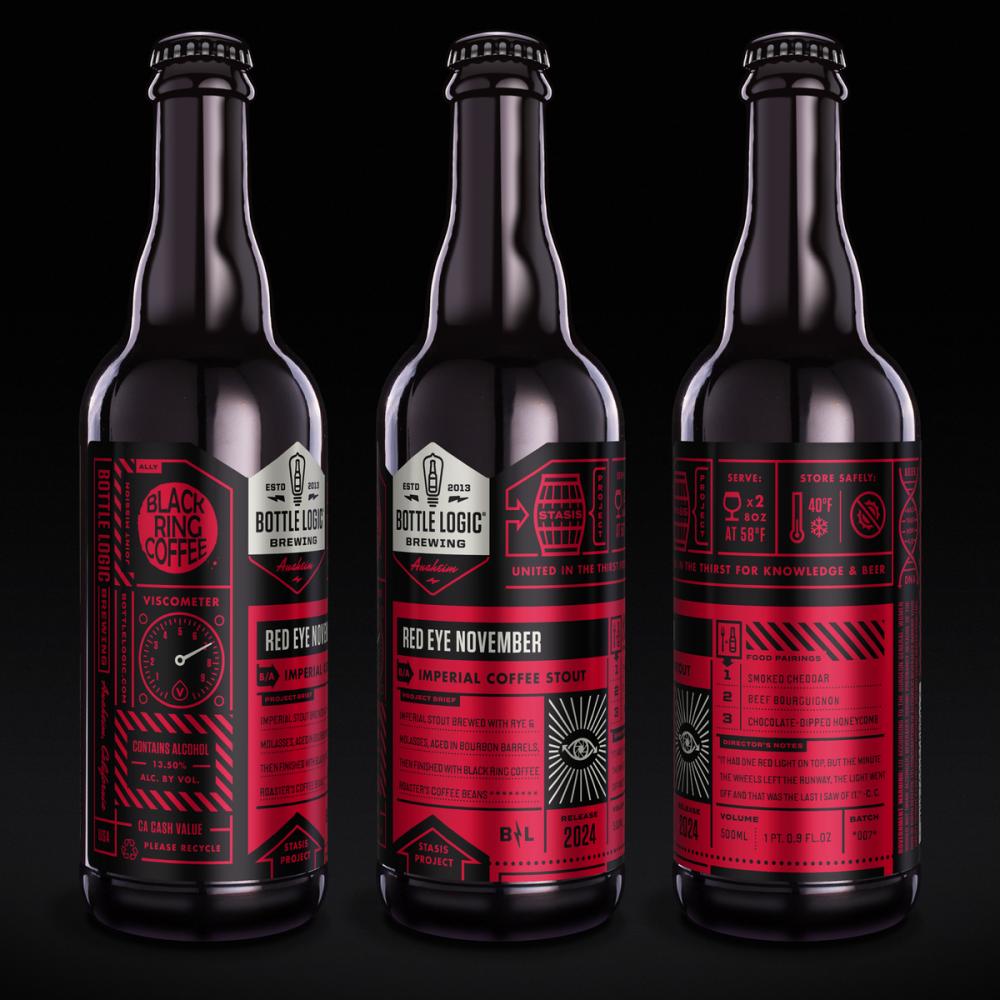 Bottle Logic’s coffee connoisseurs were led by their supervising brewer Bryan Barron, who is also a specialty coffee roaster. The crew started with a roasty Imperial Stout base brewed with rye and molasses. After aging it in bourbon barrels, they conditioned the brew on El Salvador - Las Lomas coffee beans from Black Ring — Bryan’s roastery.