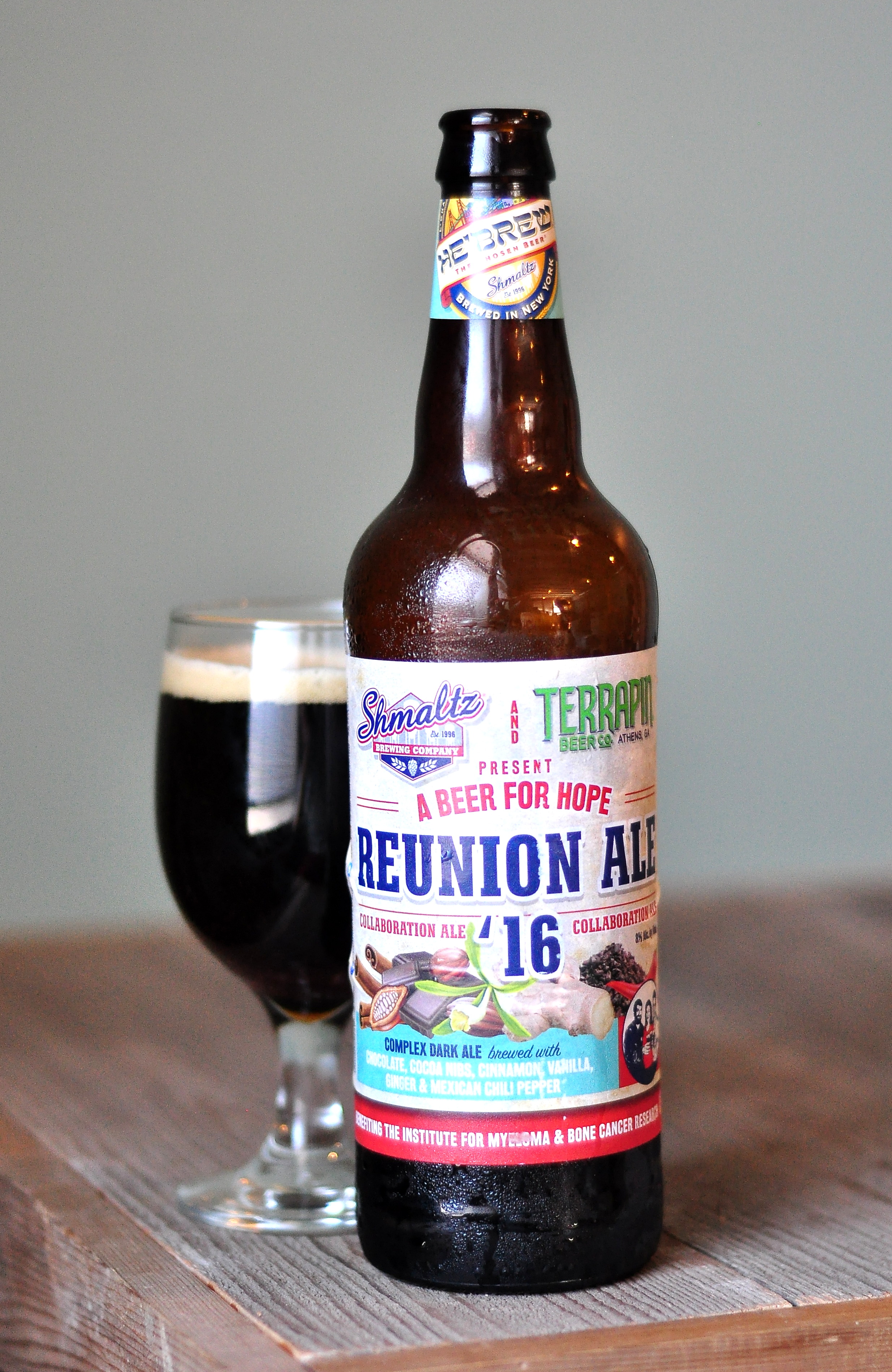 Shmaltz Brewing Company’s 8% ABV Reunion Ale 16 is a complex Dark Spiced Ale brewed with chocolate, cocoa nibs, cinnamon, vanilla, ginger and Mexican chili peppers, amen.