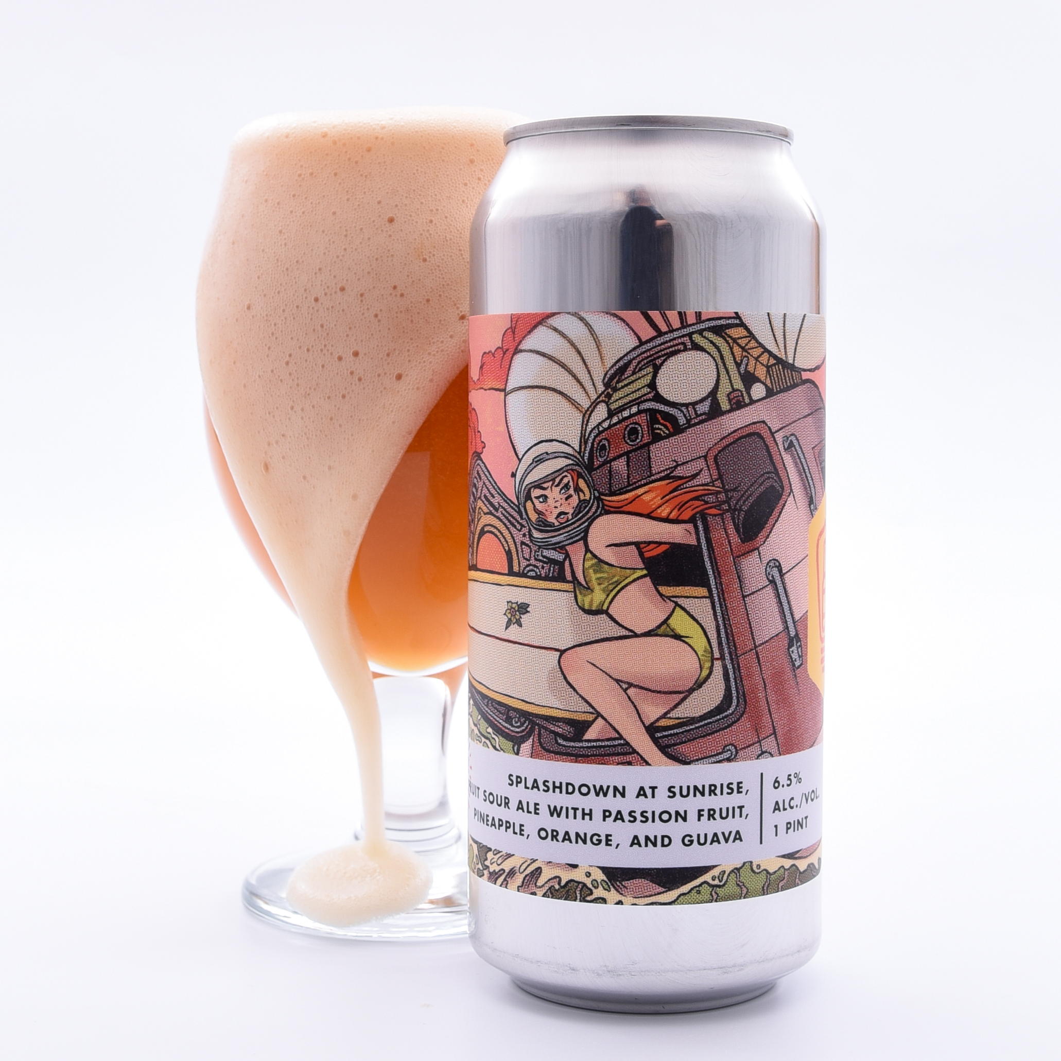 To craft this tropical fruit basket in a can, the brewers used mounds of plush pink guava, tangy orange, drippy passionfruit, and juicy pineapple generating a harmonious balance of sweet ‘n tart juices. Thanks to a dash of lactose, each swig goes down with all the velvety thickness of an actual POG smoothie, garnished with a slice of pineapple.