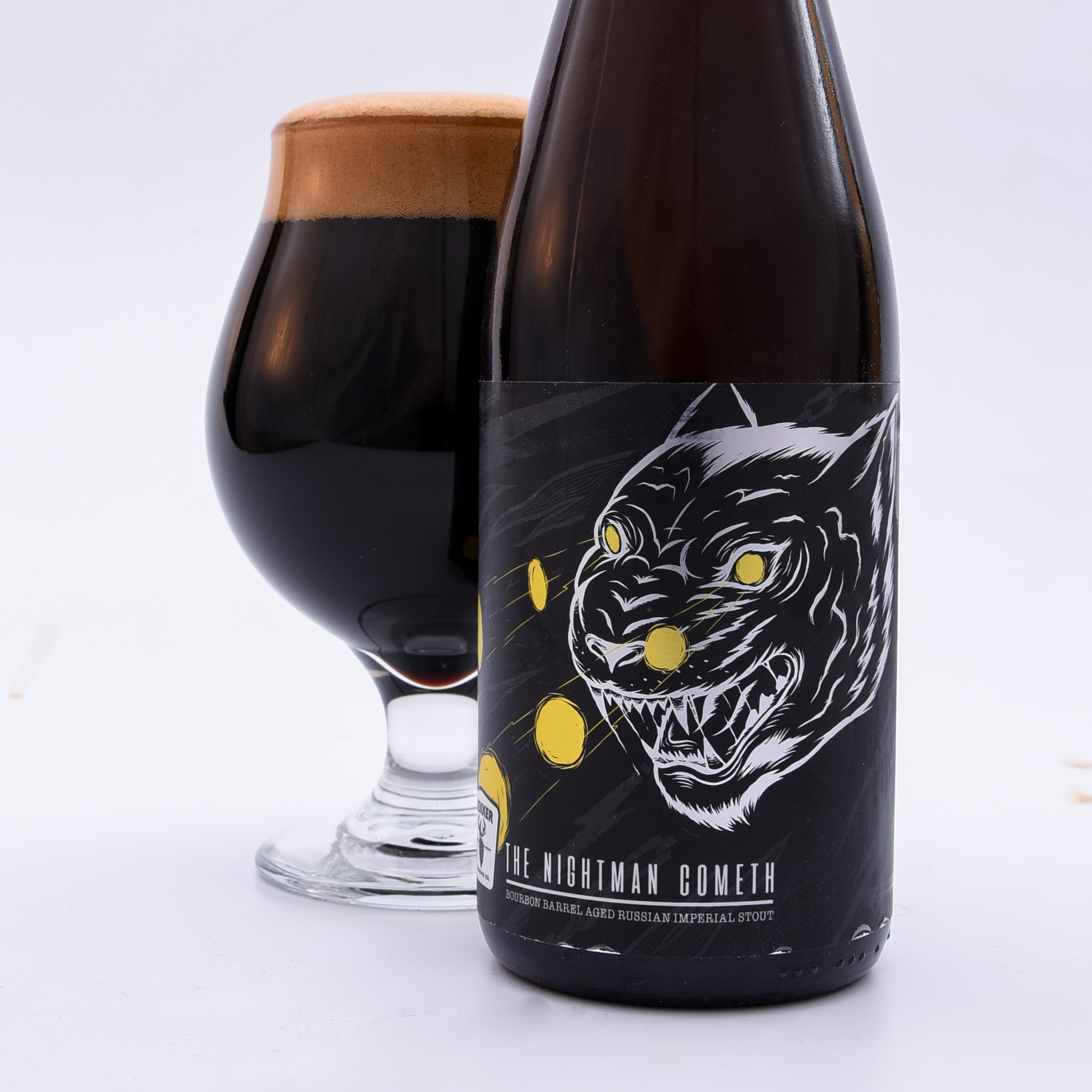 The Nightman Cometh is rich with chocolate, toffee, and molasses flavors — which are made all the more decadent by its time in Heaven Hill and Old Fitzgerald Bourbon barrels! This dark-as-night Russian Imperial Stout has notes of oaky vanilla and barrel complexity.