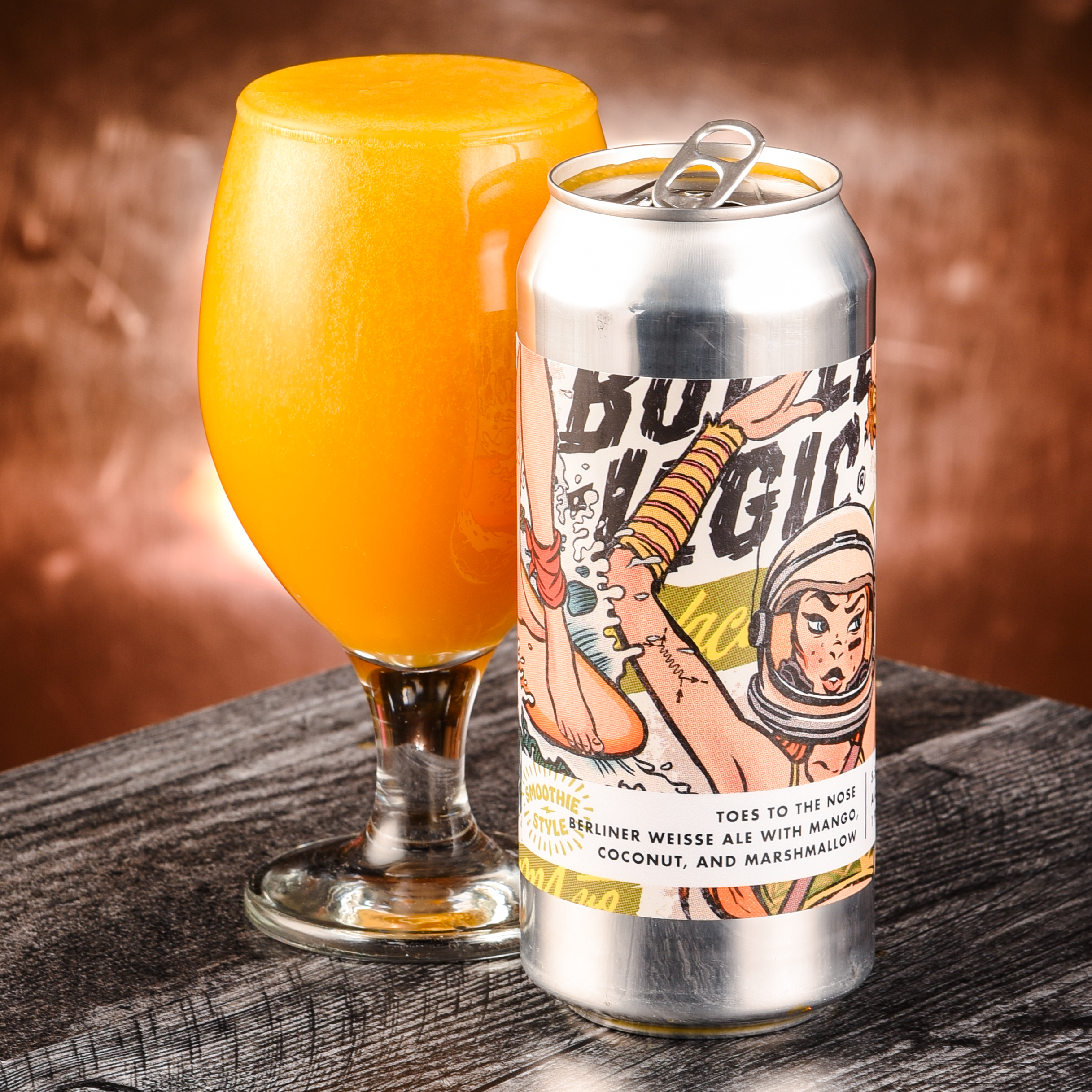 To make the succulent stunner, the renowned brew crew at Bottle Logic loaded up a Berliner base with 110lbs of mango, fresh coconut, and marshmallows, making for an ultra-thick tropical fruit bomb!
