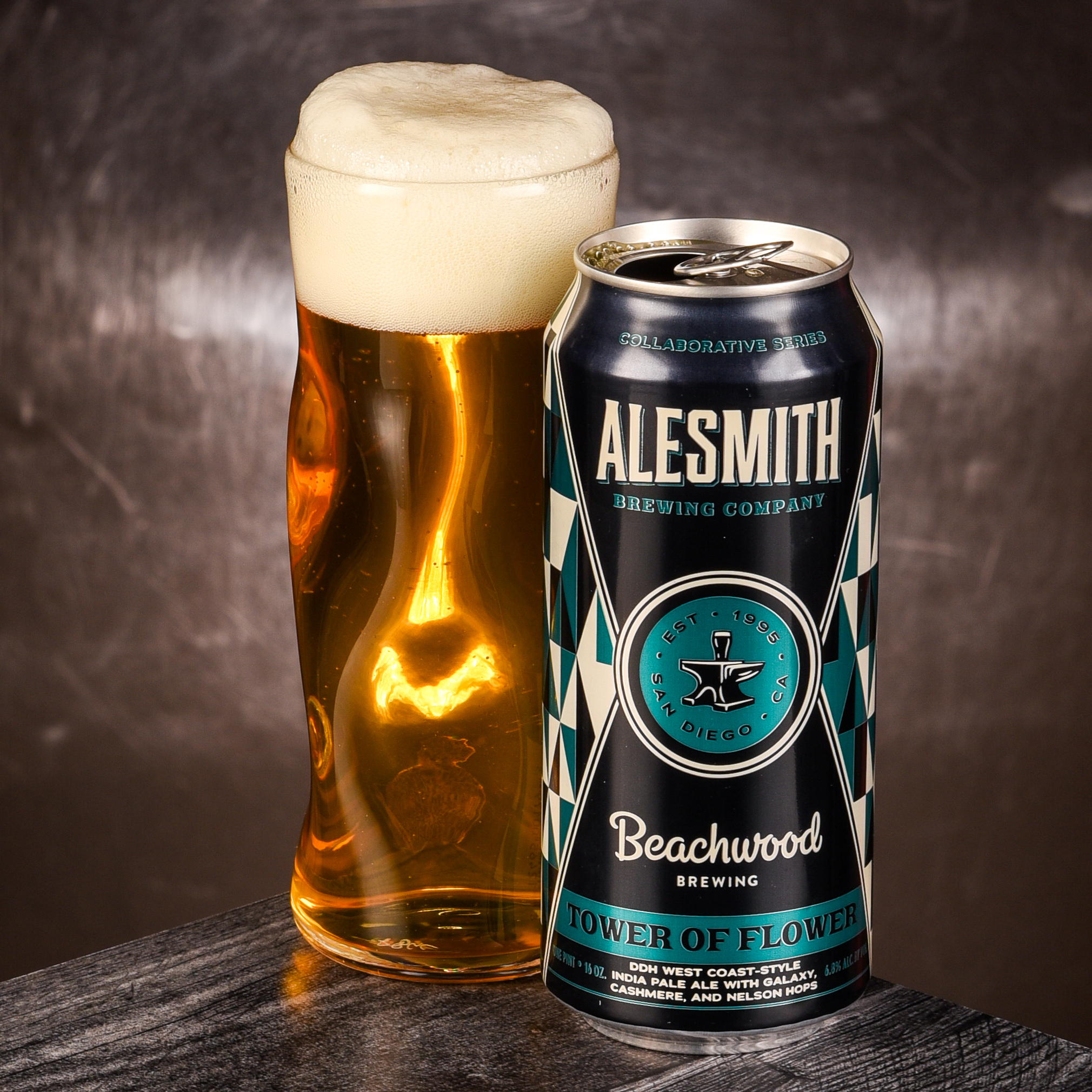 For Tower of Flower, the crews at Alesmith and Beachwood double dry hopped this West Coast style IPA with heaping helpings of Galaxy, Cashmere, and Nelson Hops for a cone connoisseur’s dream-come-true!