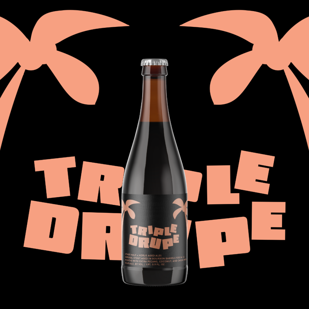 To make Triple Drupe, the all-star tag team of brewers let a rich base Stout mature in bourbon barrels and hit it with heaping helpings of coconuts, pecans, and cacao nibs!