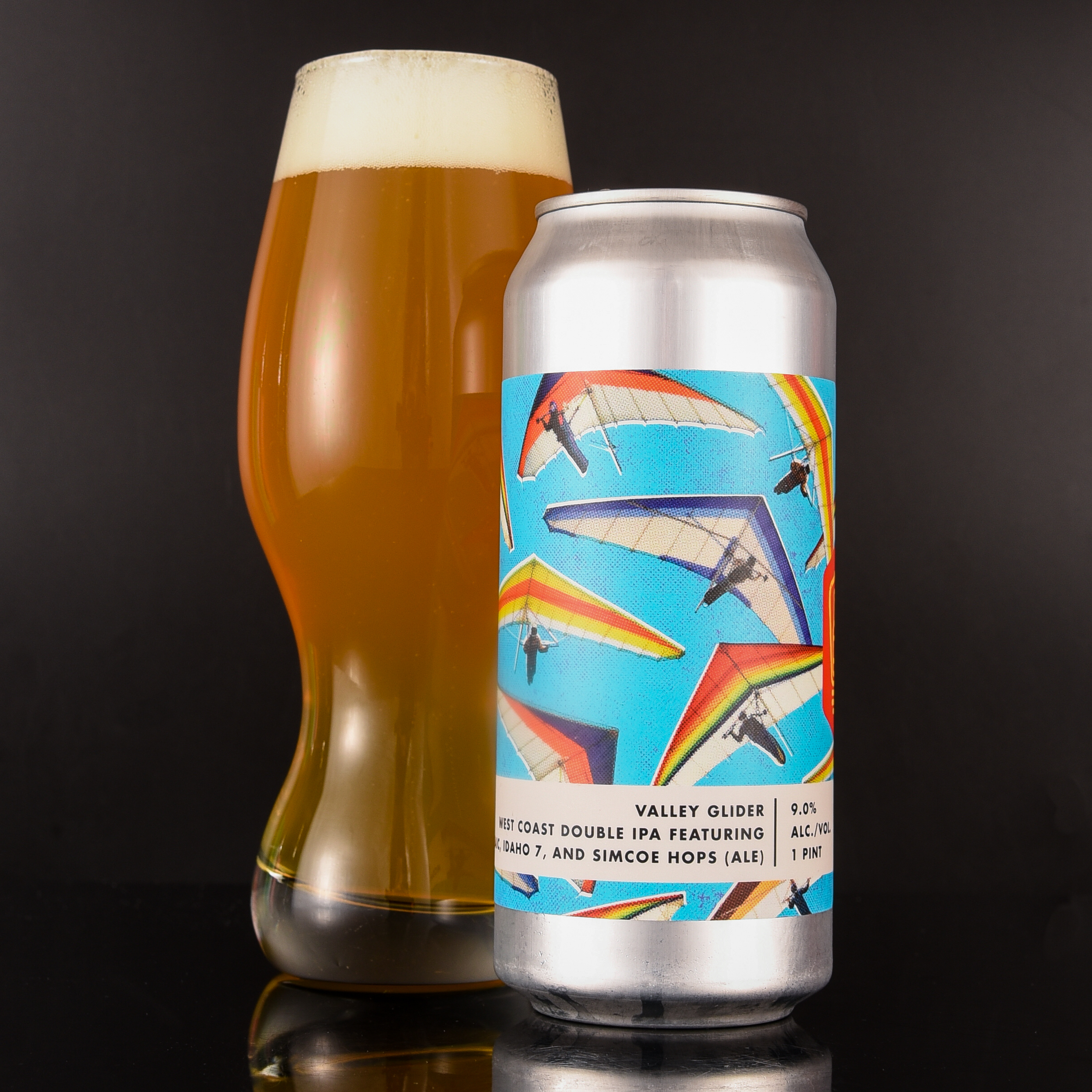 Valley Glider swells with zesty tangerine nuances soaring over blueberry, mango, and apricot in each medium-bodied sip. Earthy undertones flutter through the complex and bitter brew until it sticks the landing with a pithy, piney finish.