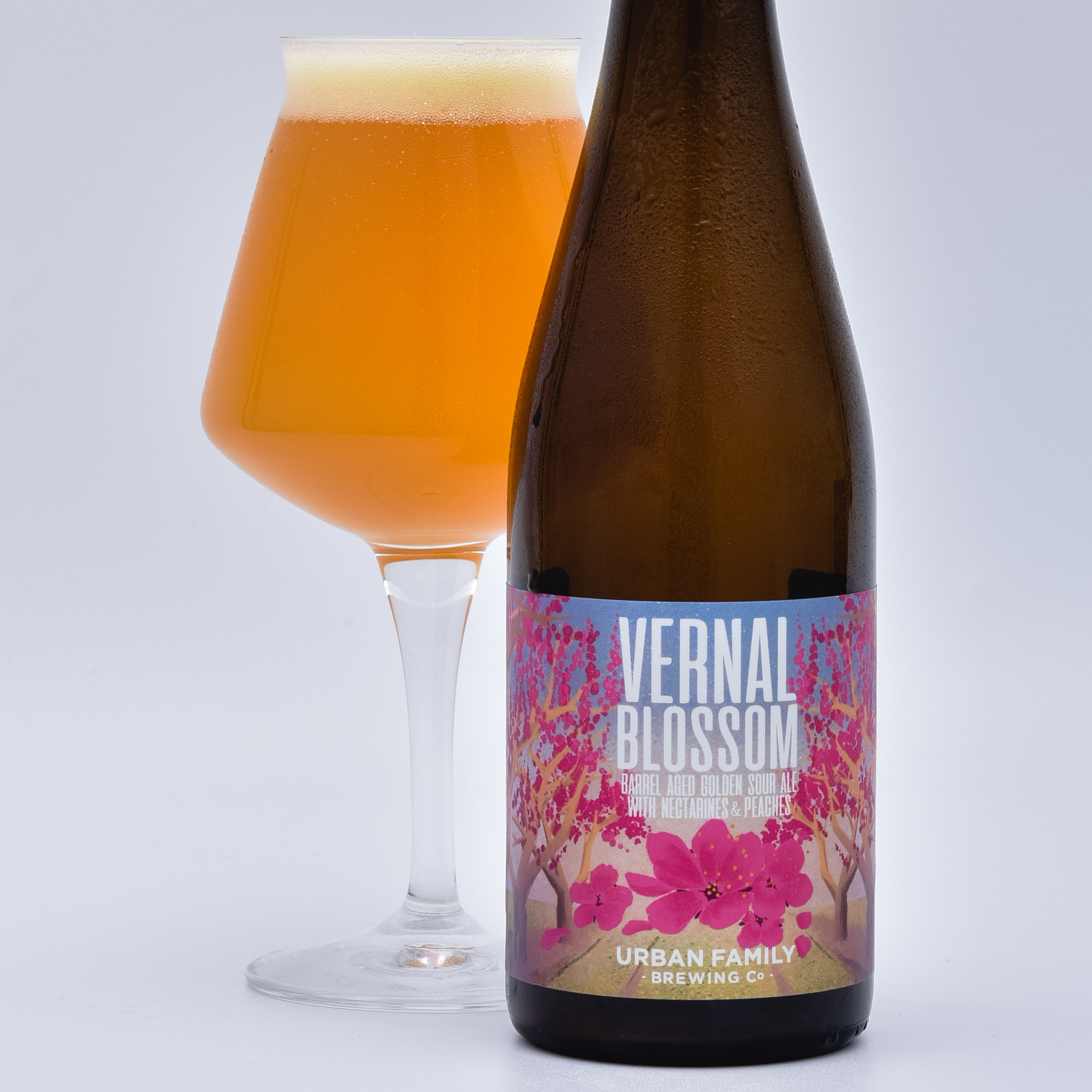 Vernal Blossom blooms with subtle floral notes that complement its pungent stone fruit sweetness and mouth-puckering tartness. Its dry, vinous complexity from the red wine barrels helps make it into one seriously elegant summer sipper.